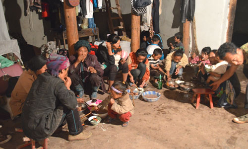 對(duì)于偏遠(yuǎn)山區(qū)的貧困與落后,雖然隊(duì)員們?cè)缬行睦頊?zhǔn)備,但實(shí)際到了兩河口鎮(zhèn),當(dāng)?shù)仄D苦的條件還是遠(yuǎn)遠(yuǎn)超出了這群在大城市里生活慣了的年輕人的想象。沒有網(wǎng)絡(luò),白天斷電,有時(shí)為了發(fā)送一條短信打一個(gè)電話需要走很遠(yuǎn)的路才會(huì)有信號(hào)。飲食也是一大挑戰(zhàn),實(shí)踐隊(duì)的伙食是清一色的土豆,而且一天只有兩頓土豆,這是當(dāng)?shù)氐牧?xí)俗。沒有桌子,所有人就在地上吃,沒有筷子就用手。煮的土豆吃膩了就吃烤土豆,扒皮后蘸點(diǎn)調(diào)料,吃得滿嘴滿手黑乎乎的。對(duì)于這樣的飲食方式,隊(duì)員們一開始的確不適應(yīng),覺得有點(diǎn)落后和不衛(wèi)生,但面對(duì)彝家人的熱情好客,隊(duì)員們也就入鄉(xiāng)隨俗,和彝家人一起享用起大山里的土豆來。為了感謝隊(duì)員們的付出,彝家人偶爾也會(huì)給隊(duì)員們做蕎麥餅換換口味。