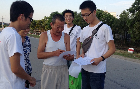 邀請(qǐng)當(dāng)?shù)鼐用裉顚懹嘘P(guān)洪湖環(huán)境狀況的調(diào)查問(wèn)卷。