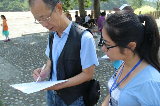 “綠色新生態(tài)”團(tuán)隊(duì)的成員來自四川農(nóng)業(yè)大學(xué)資源與環(huán)境學(xué)院,此次實(shí)踐的主題是“宣環(huán)保足探石棉縣,揚(yáng)生態(tài)共筑中國(guó)夢(mèng)”。隊(duì)員們前往災(zāi)后重建縣城——雅安市石棉縣開始為期8天的征程:走訪石棉縣下屬各鄉(xiāng)鎮(zhèn),發(fā)放調(diào)查問卷,采訪相關(guān)政府部門,參觀革命紀(jì)念館等。雖然實(shí)踐進(jìn)展的不是一帆風(fēng)順,但隊(duì)員們?nèi)詧?jiān)持不懈,不斷反思自我!敖裉斓膶(shí)踐帶給我最多的就是震撼和感動(dòng),在分發(fā)便利貼時(shí)遇到了很多困難,但克服這些困難之后會(huì)有一種深深的滿足感。飽含濃郁的紅色文化氛圍的安順是我們小隊(duì)宣傳‘中國(guó)夢(mèng)’的絕佳之地,我們還要更加努力!标(duì)員胡瀚文在中國(guó)工農(nóng)紅軍強(qiáng)渡大渡河紀(jì)念館做環(huán)保宣傳時(shí)這樣告訴記者。另一位隊(duì)員郭瑀說:“能深入鄉(xiāng)村進(jìn)行面對(duì)面的了解對(duì)我來說是一個(gè)全新的經(jīng)歷,很新鮮也很有意義。雖然實(shí)踐的時(shí)候很累,但還是有一股力量支撐著自己堅(jiān)持下去,我們的成員們都很棒,相信我們能取得好的成果!