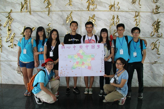隊(duì)員們向游客分發(fā)便利貼,收集他們的中國(guó)夢(mèng),與便利貼展示板合影。