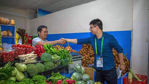 分發(fā)完盒飯,劉會彬說一會要去菜市場采購一次食材,邀請我們一同前往,小編當然欣然應邀。途中,又開心地交流起來。