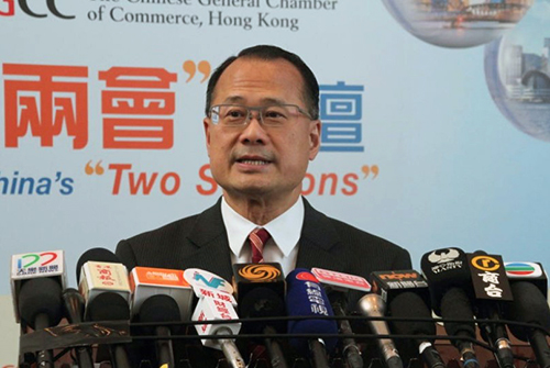 蔡冠深在香港中華總商會(huì)舉辦的“解讀全國兩會(huì)論壇”上接受采訪