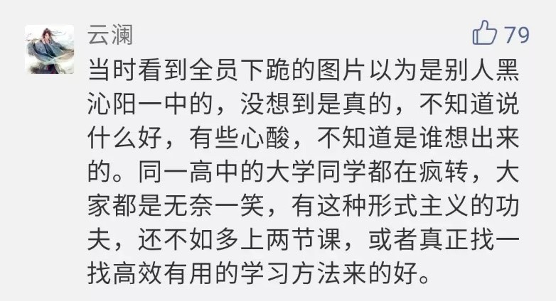 視頻發(fā)布后引發(fā)了網(wǎng)友討論。有人質(zhì)疑此活動(dòng)過(guò)于“形式主義”,遭學(xué)校官號(hào)怒懟:思維是不是有毛病?11月21日,該所學(xué);貞(yīng)稱(chēng),校領(lǐng)導(dǎo)在活動(dòng)前不知情,是高三年級(jí)安排的,下跪只是一種形式,想教孩子們學(xué)會(huì)感恩。