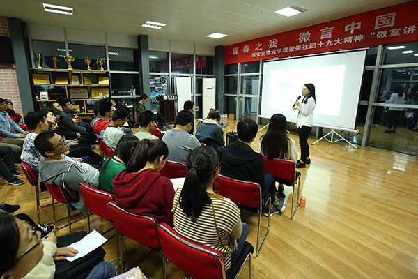 錄制前的電話初采時(shí),聽聞李婧竟是比記者僅大一歲的博士生,我訝異不止。清脆活潑的聲音,大方清晰的談吐,正是一場(chǎng)場(chǎng)宣講留在她身上的印記,也帶著遠(yuǎn)遠(yuǎn)超出她這個(gè)年紀(jì)的穩(wěn)重和堅(jiān)定。從2017年作為第一批宣講人加入西安交通大學(xué)學(xué)生微宣講團(tuán)開始,從山村小學(xué)到重點(diǎn)高校,從工廠車間到領(lǐng)軍企業(yè),從邊防軍營到繁華都市,李婧的足跡遍布22個(gè)省(市、自治區(qū)),參與宣講工作。