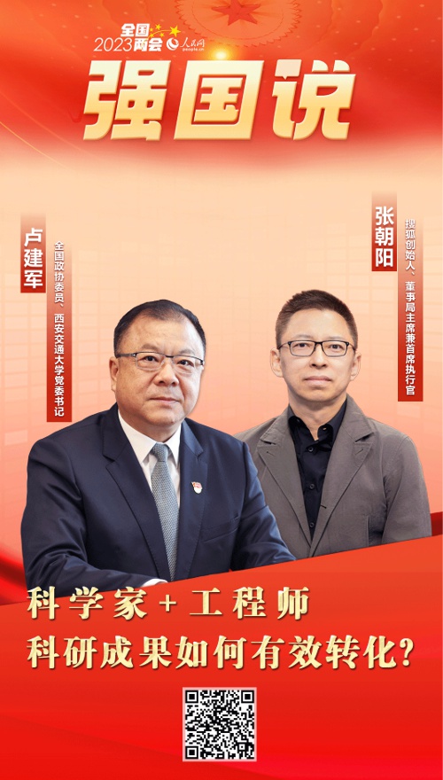 產(chǎn)學(xué)研深度融合,不僅是提高科技成果轉(zhuǎn)化與產(chǎn)業(yè)化水平的具體路徑之一,也是培養(yǎng)科技創(chuàng)新人才的關(guān)鍵手段。2023年全國(guó)兩會(huì)期間,全國(guó)政協(xié)委員、西安交通大學(xué)黨委書記盧建軍,搜狐創(chuàng)始人、董事局主席兼首席執(zhí)行官?gòu)埑栕隹腿嗣窬W(wǎng)《強(qiáng)國(guó)說》欄目,就產(chǎn)學(xué)研深度融合相關(guān)話題展開對(duì)話。